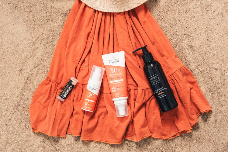 Luonnonkosmetiikan aurinkosuojat lähtevät iholta parhaiten öljypohjaisella puhdistustuotteella, joten pakettiin kuuluu myös kesäisen tuoksuinen öljypuhdistustuote koko vartalolle. Lisäksi mukana on viileä Hurraw-huulivoide, joka sisältää aurinkosuojan ja pitää huulesi suojattuina ja kosteutettuina.