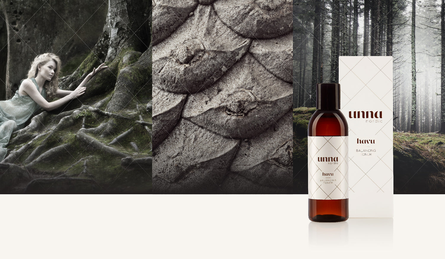 pääraaka-aineet ovat peräisin suomalaisesta luonnosta. Metsä ja sen myönteiset vaikutukset mieleen ja kehoon olivat inspiraation lähteenä Unna Nordic -sarjalle. Tuotteiden laadukkaat raaka-aineet vahvistavat ihoa ja aktivoivat sen omaa uudistumiskykyä.