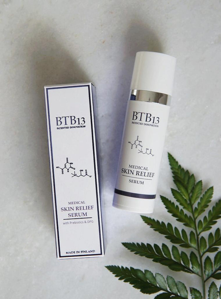 Seerumi on kuin ihon täsmälääke. Se hoitaa itse syytä ja onkin tämän tuotepaketin tähti. Yksi pumppaus kasvoveden jälkeen iholle hoitaa tulehdusta, sekä antaa iholle optimaalisen mahdollisuuden palautua. BTB13 -sarjan tieteellinen ja patentoitu yhdiste toimii antioksidanttina, joka vahvistaa sekä edistää ihon uudistumista. Hyaluronihappo kosteuttaa ihoa ja prebiootit antavat vastustuskykyä.