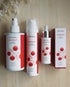 Tuotepaketti sisältää puhdistusöljyn, kasvoveden ja hoitoöljyn.